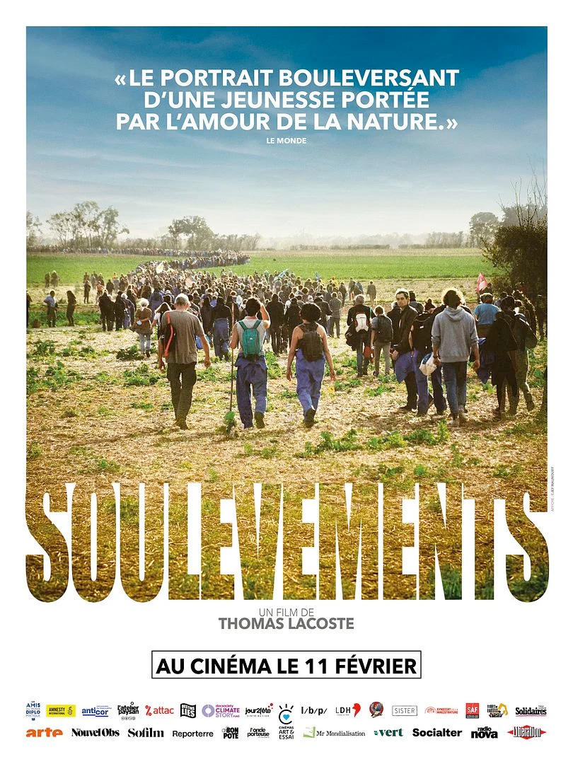 SYPNOSIS Un portrait choral à 16 voix, 16 trajectoires singulières, réflexif et intime d’un mouvement de résistance intergénérationnel porté par une jeunesse qui vit et qui lutte contre l’accaparement des terres et de l’eau, les ravages industriels, la montée des totalitarismes et fait face à la répression politique. Une plongée au cœur des Soulèvements de la Terre révélant la composition inédite des forces multiples déployées un peu partout dans le pays qui expérimentent d’autres modes de vie, tissent de nouveaux liens avec le vivant, bouleversant ainsi les découpages établis du politique et du sensible en nous ouvrant au champ de tous les possibles.