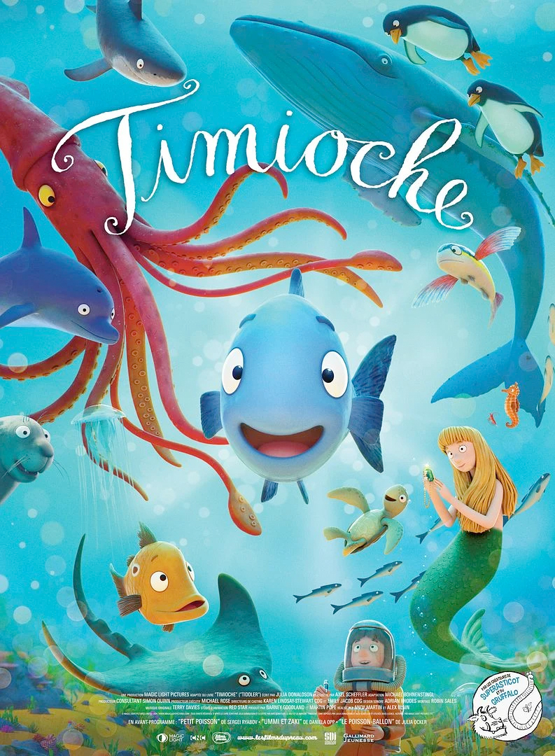 Timioche d'Alex Bain et Andy Martin (Angleterre, 2024, 23') : Timioche, un petit poisson toujours en retard, adore inventer des excuses, souvent plus grosses que lui ! Jusqu’au jour où une mésaventure lui arrive vraiment…